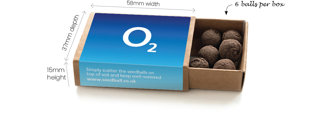 Our branded matchboxes are a UK made, eco and bee friendly promotional item made from 100% recycled cardboard. A 51x51mm print area covers the top of the box and one side panel. Each box contains 6 wildflower seed balls – coverage for 2-3 post. With a minimum order quantity of only 50 pieces and quick lead times (5-7 working days for orders up to 1000 units).